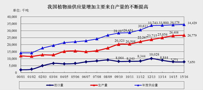 2015年度,我國食用油市場的總供給量為3442.9萬噸,其中包括國產(chǎn)油料和進(jìn)口油料合計(jì)生產(chǎn)的食用油為2677.9萬噸,仍有合計(jì)為765萬噸食用油缺口需要依賴進(jìn)口!